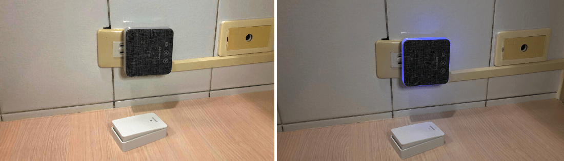 另外,發射器也有一個指示燈,當你按下去的時候,它會顯示,讓來訪者知道說他是有成功按下去的。
